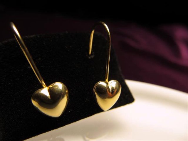 ◆高品質Silver925パーツ◆手作りアクセサリーの必需品!◆1セット2個入り◆ハートモチーフ 裏面カン付きピアスフック◆幅約8-9mm 長さ約18mm ハート横サイズ約6.5mm カン穴内径約2mm◆18金ゴールド仕様◆PIR003◆