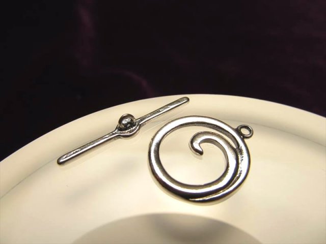 ◆高品質Silver925パーツ◆ネックレスやワイヤーブレスに!◆渦巻き型トグル金具◆バーの幅約23.8mm リング穴サイズ約9.7mm◆アンティーク仕様◆TGL018◆