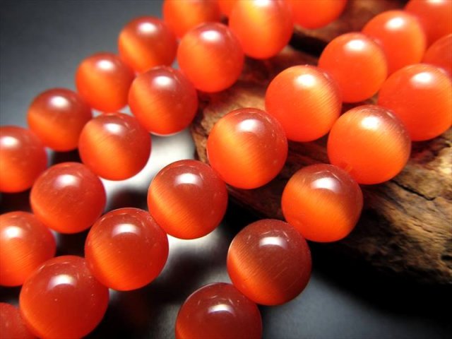★レッドカラー★お手軽キャッツアイ★8mm珠★一連★レッドカラーキャッツアイ【人工石】★約38-40cm★