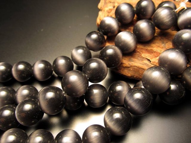 ★ブラックカラー★お手軽キャッツアイ★11.5-12mm珠★一連★ブラックカラーキャッツアイ【人工石】★約38-40cm★