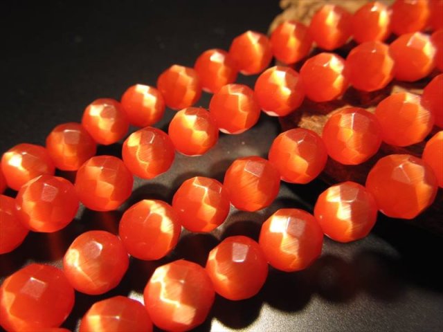 ★64面カット★レッドオレンジカラー★お手軽キャッツアイ★7.5mm珠★一連★レッドオレンジカラーキャッツアイ【人工石】★約37cm★64面カット★