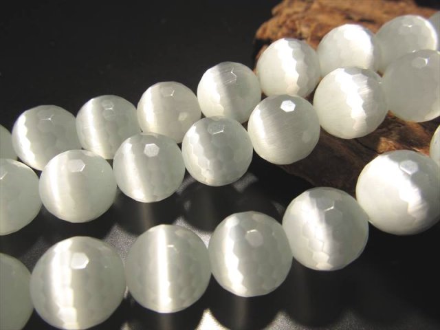 ★128面カット★ホワイトカラー★お手軽キャッツアイ★11.5-12mm珠★一連★ホワイトカラーキャッツアイ【人工石】★約37cm★128面カット★