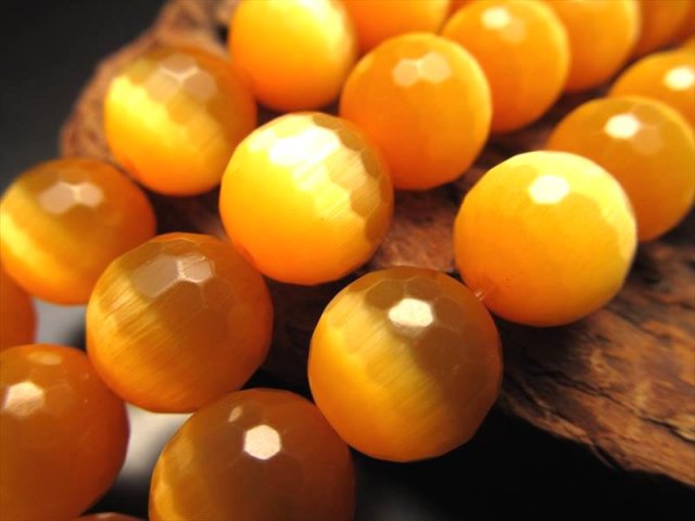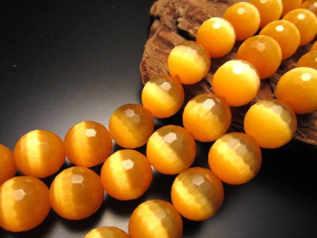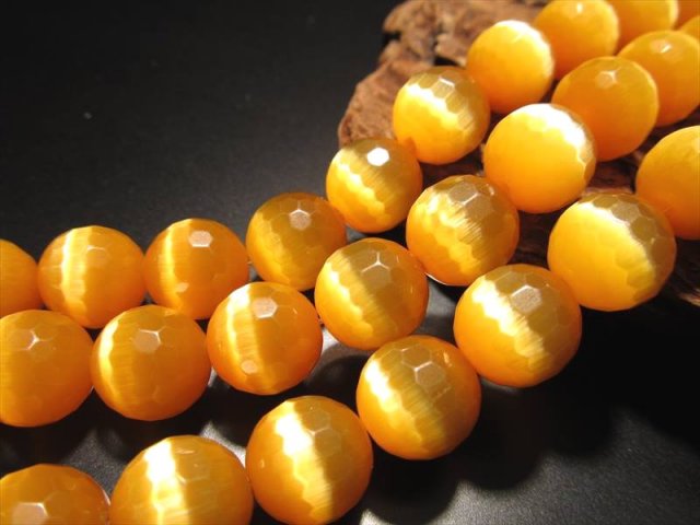 ★128面カット★オレンジカラー★お手軽キャッツアイ★11.5-12mm珠★一連★オレンジカラーキャッツアイ【人工石】★約37cm★128面カット★