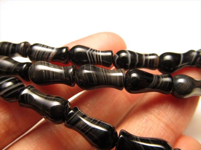 • ★可愛らしい水瓶型★ピアス・ストラップにも!★一連★ブラックアゲート【黒瑪瑙】水瓶型★縦約11.5mm×横約6mm★約38-40cm★【ブラジル産】