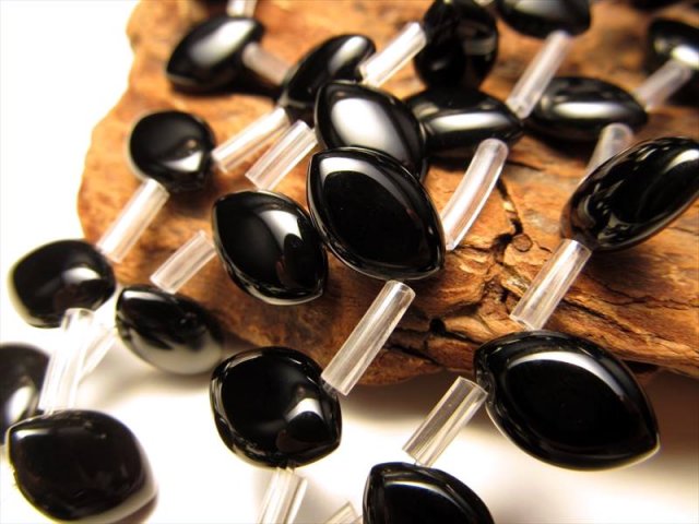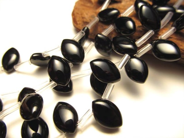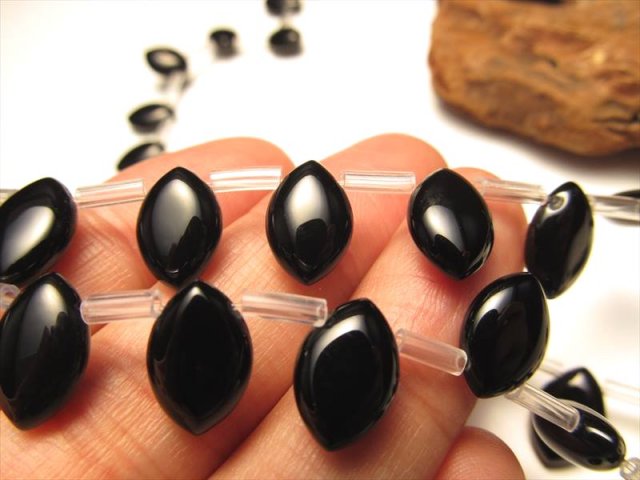 • ★マーキス型★一連★ブラックオニキス【黒瑪瑙】マーキス型★縦約12mm×横約8mm★33珠前後★【ブラジル産】
