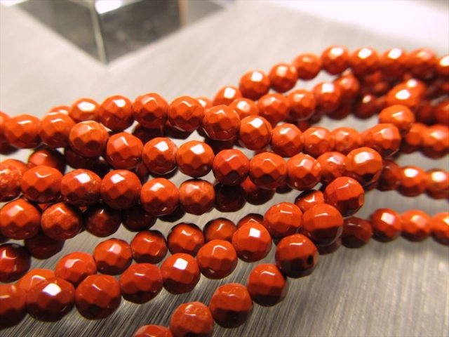 • ★約3mm珠★極小サイズ★一連★レッドジャスパー【赤碧玉】カット★約38-40cm★穴径約0.6mm★【インド産】