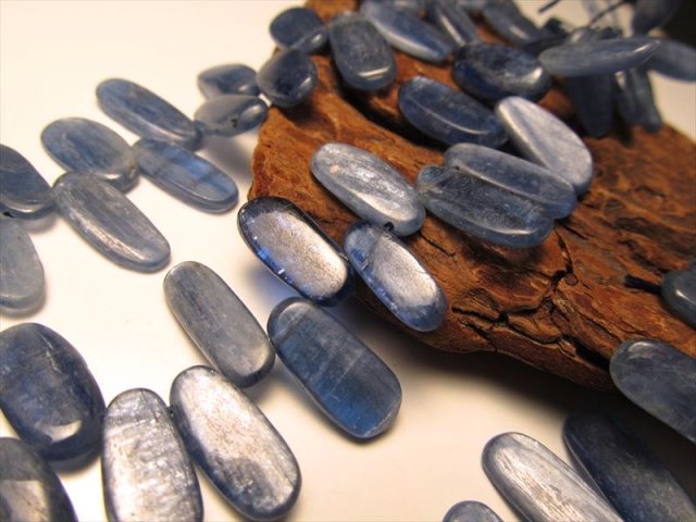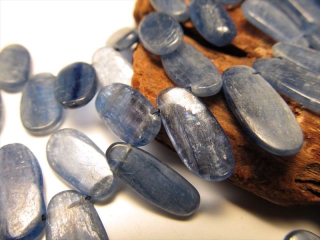 • ★フラットタンブル型★美麗ブルーグラデーション★粒数たっぷり!★一連★カイヤナイト【藍晶石】フラットタンブル型クレオ穴★縦約12-19mm★約33cm★【ブラジル産】