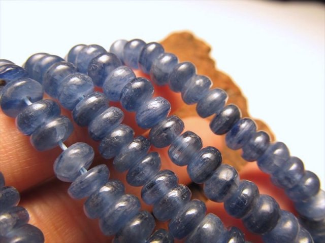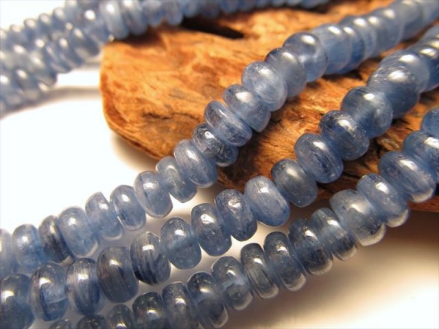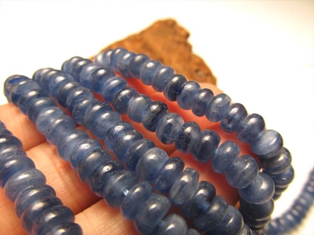 • ★約6.5mm★極上濃厚ブルー!★ボタン型★ディープブルー★一連★カイヤナイト【藍晶石】ボタン型★約38-40cm★【ブラジル産】