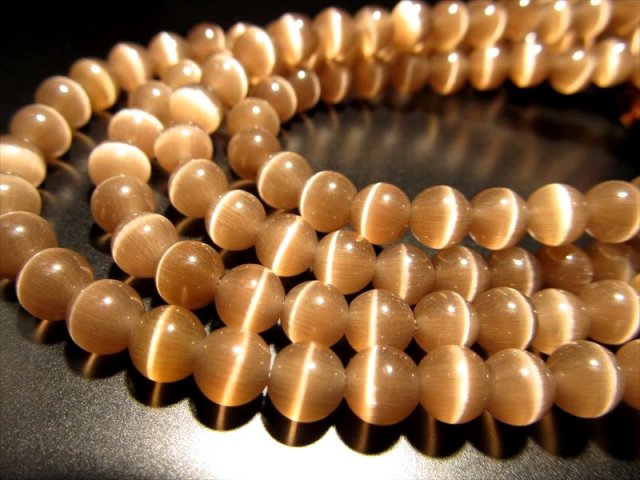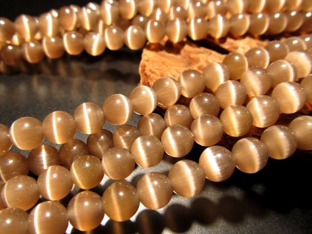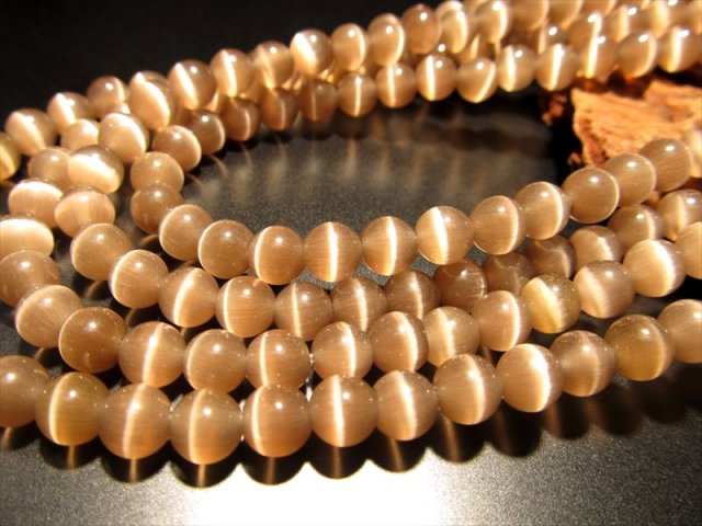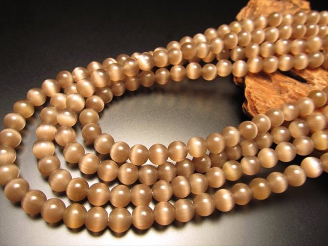 ★ダークブラウンカラー★お手軽キャッツアイ★6mm珠★一連★ダークブラウンカラーキャッツアイ【人工石】★約38-40cm★