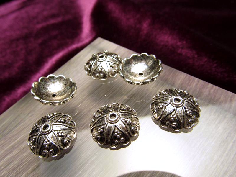 ◆ハイクォリティ・メタルパーツ◆花型 飾り金具◆約13mm 【穴径1.5ミリ】◆10個入り・250円◆真鍮 シルバー◆H19◆
