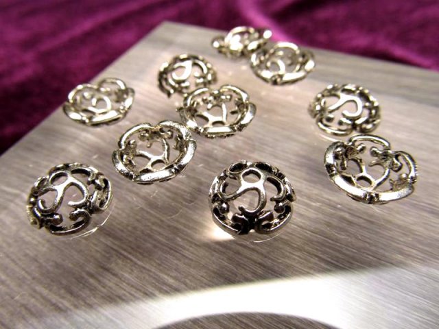 ◆ハイクォリティ・メタルパーツ◆花型 飾り金具◆約10mm 【穴径1.5ミリ】◆10個入り・180円◆真鍮 シルバー◆H20◆
