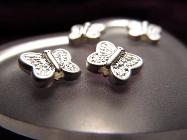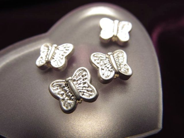 ◆ハイクォリティ・メタルパーツ◆蝶々型スペーサー◆約7.5mm 【穴径1.5ミリ】◆10個入り・230円◆真鍮◆シルバータイプ◆H33◆