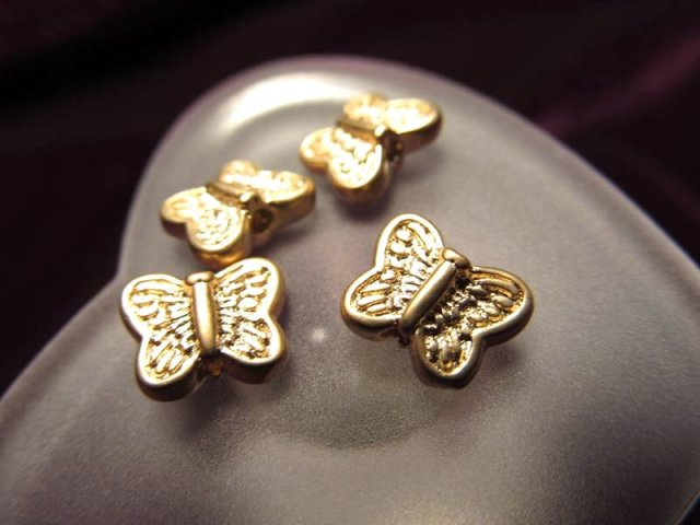 ◆ハイクォリティ・メタルパーツ◆蝶々型スペーサー◆約7.5mm 【穴径1.5ミリ】◆10個入り・230円◆真鍮◆ゴールドタイプ◆H34◆