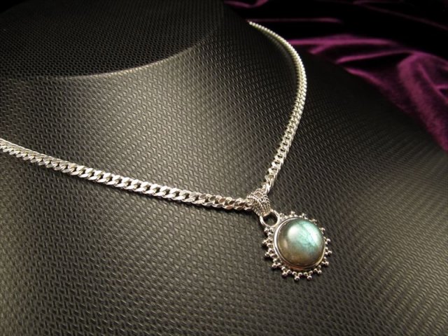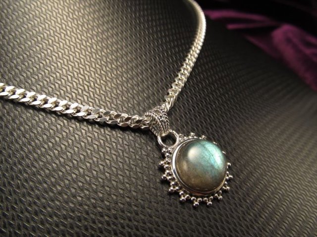 ◆精巧なシルバー彫金◆上質シラーラブラドライト◆1点2680円◆Silver925◆ラブラドライトペンダントトップ◆幅約18mm◆【マダガスカル産】