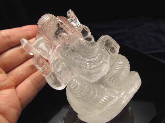 ★希少水晶贅沢使用!★ヒマラヤ水晶彫り!★夢の実現を助ける★あらゆる障害を除去して成功に導く守り神★極上1点物★ヒマラヤ産天然水晶★ガネーシャ彫り置物★高さ約9cm★横幅約6cm★約355.5g★
