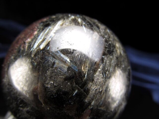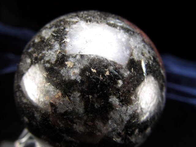 ★希少石!ヌーマイト★異彩を放つ輝き!ブルーシルバー★太古の天然石★魔術師の石★1点物★ヌーマイト丸玉置物★直径約49.8mm★約205g★台座付き★【グリーンランド産】