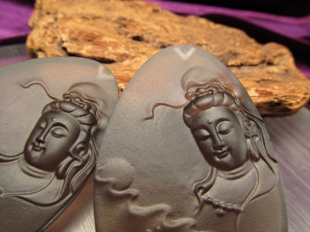 ◆特大サイズ・白衣観音の御尊顔◆慈愛・守護◆フロストタイプ◆お守りとしても◆透明オブシディアン【黒曜石】 白衣観音御尊顔彫り カービングプレート タイプB◆縦約56mm◆【メキシコ産】◆OBP70◆