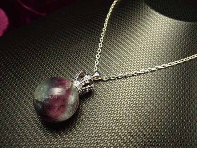 ◆激安!◆ころんと可愛らしい王冠デザイン◆ジルコニア装飾付き◆クラウンデザインペンダントトップ【フローライト】◆石サイズ約20mm珠◆縦約31mm◆【アメリカ産】