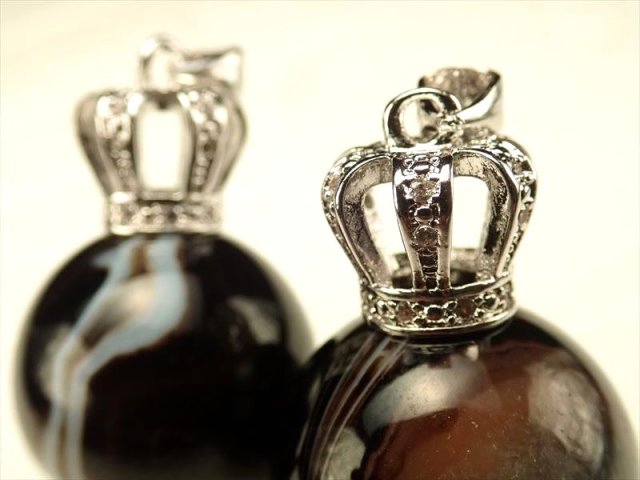 ◆激安!◆ころんと可愛らしい王冠デザイン◆ジルコニア装飾付き◆クラウンデザインペンダントトップ【天眼メノウ】◆石サイズ約20mm珠◆縦約31mm◆【ブラジル産】