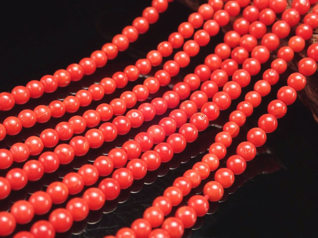 ◆約2.5-3mm珠◆一連◆数量限定入荷!◆極上!地中海産赤珊瑚◆希少な天然赤珊瑚◆真っ赤な朱色!◆安産子宝・厄除け◆天然レッドコーラル【紅珊瑚】ビーズ連◆50cm前後◆【地中海産】