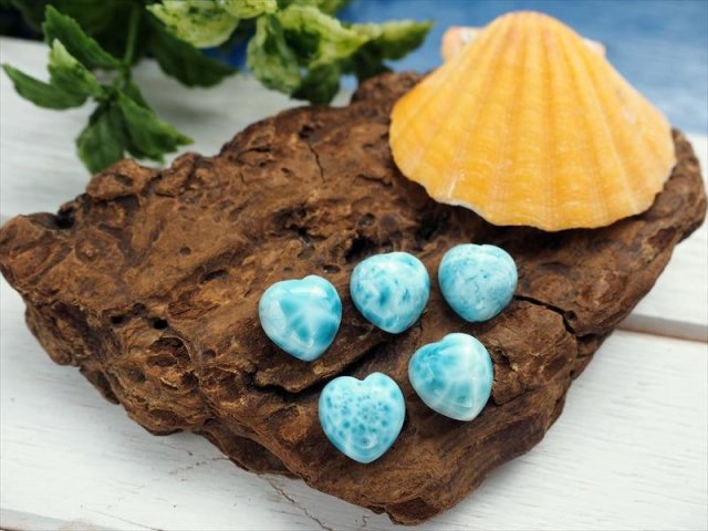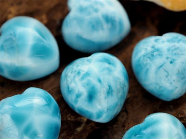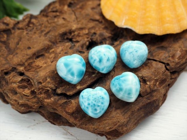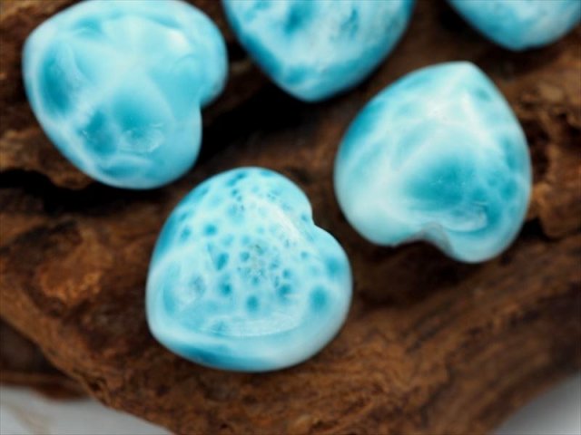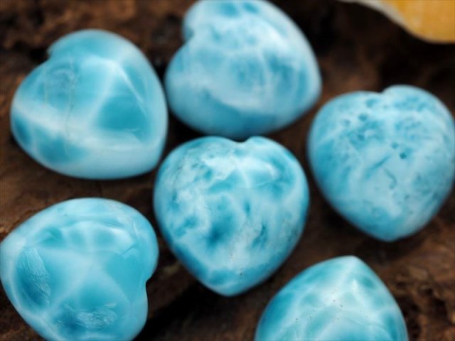 ◆オススメ品質!◆美麗ブルー◆ツーソン展示会商品◆水面のような模様が美しいカリブ海の宝石◆世界三大ヒーリングストーン◆愛と平和の象徴◆AAA◆ラリマー【ブルーペクトライト】ハートカボションタンブル◆サイズ縦約12mm◆【ドミニカ共和国産】