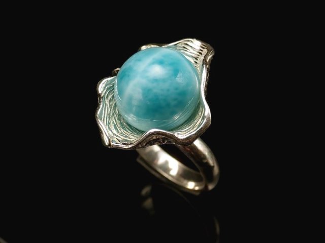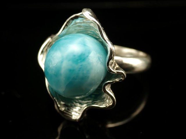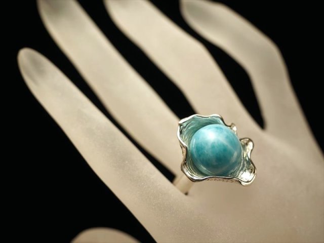 ★限定1点のみ!★バイヤー厳選!★極上大粒ラリマー!★カリビアンジュエリー★Silver925★ツーソン展示会商品★1点物★ラリマー【 ブルーペクトライト 】リング★シェルデザイン★シェル部分サイズ最大約24mm★石サイズ約13mm★リングサイズ17号★【ドミニカ共和国産】