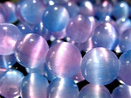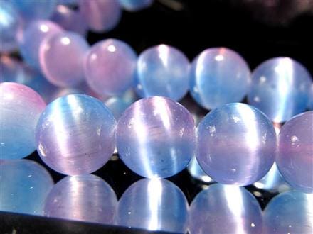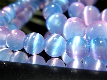 • ★約8.5mm珠★一連★幻想的なユニコーンカラー★抜群のキャッツアイ効果★お買い得品質★シルクのような繊維質★天然ジプサム サティンスパーキャッツアイ★清廉潔白の石★キャッツアイセレナイト【透石膏】★パープル&ブルーカラー★約37-39cm★【メキシコ産】