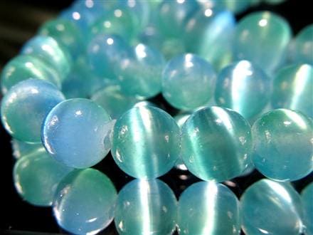 • ★約8.5mm珠★一連★爽やかなアクアミントカラー★抜群のキャッツアイ効果★お買い得品質★シルクのような繊維質★天然ジプサム サティンスパーキャッツアイ★清廉潔白の石★キャッツアイセレナイト【透石膏】★グリーン&ブルーカラー★約37-39cm★【メキシコ産】