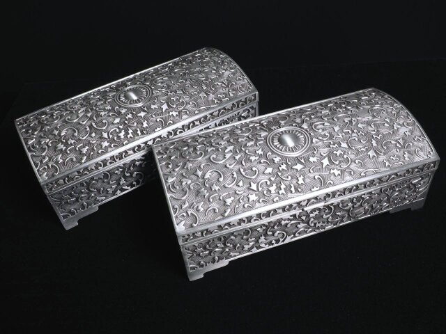 ◆インテリアとしても馴染むシックなデザイン◆重厚なメタルBOX◆アクセサリーボックスやタロットケースにも◆ボタニカル柄メタルボックス◆Mサイズ◆奥行約9cm×横約17cm×高さ約6cm◆