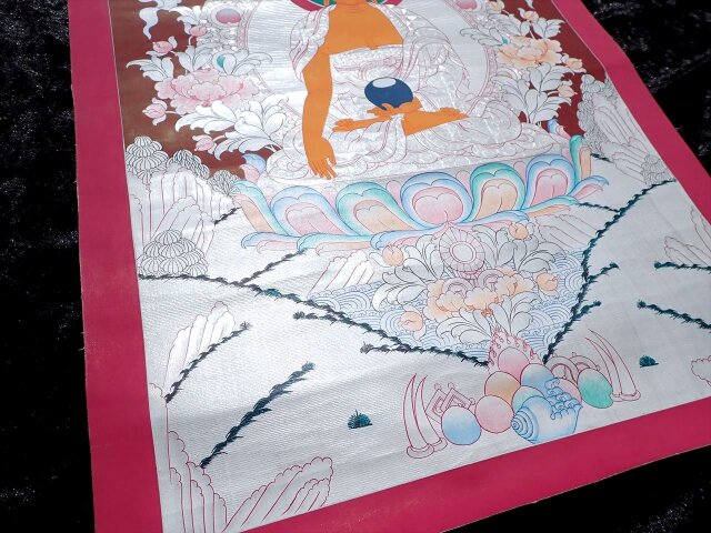 ◆【限定入荷!煌びやかな一品】精密画(タンカ)◆現地より直送!僧侶・タンカ絵師による肉筆◆貴重な本物・曼荼羅(マンダラ)◆チベット仏教 悟りの図像・仏教美術◆100%木綿(コットン)台紙◆釈迦如来曼荼羅(曼陀羅)図像◆サイズ約55×40cm◆