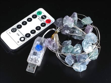★おしゃれなインテリア照明★店舗や自宅、アイテムの装飾に★幻想的な天然石の光★便利なUSB接続&リモコン付き★全8種の点灯パターン★フローライト【蛍石】LEDストリングライト★全長約2m★電球数20個★【動画あり】
