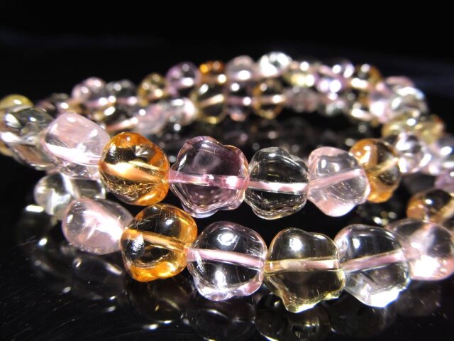 ◇透明!宝石質◇輝く!スターデザイン◇4色MIXカラーブレスレット◇アメジスト・シトリン・ローズクォーツなど◇4種MIXスターデザインブレスレット◇8-8.5mm×24珠前後◇内径約17cm◇【動画あり】◇≪2Z6≫