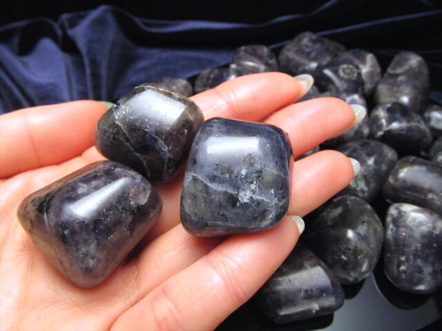 ★限定5袋★超希少!★煌くアベンチュレッセンス入り!★きらりと光る神秘的ストーン★流通量極少鉱物!★アベンチュレッセンス入りアイオライト タンブル詰め合わせ★約200g入り★【インド産】