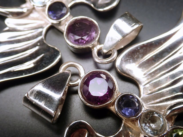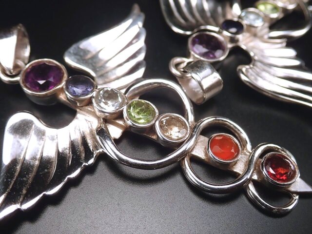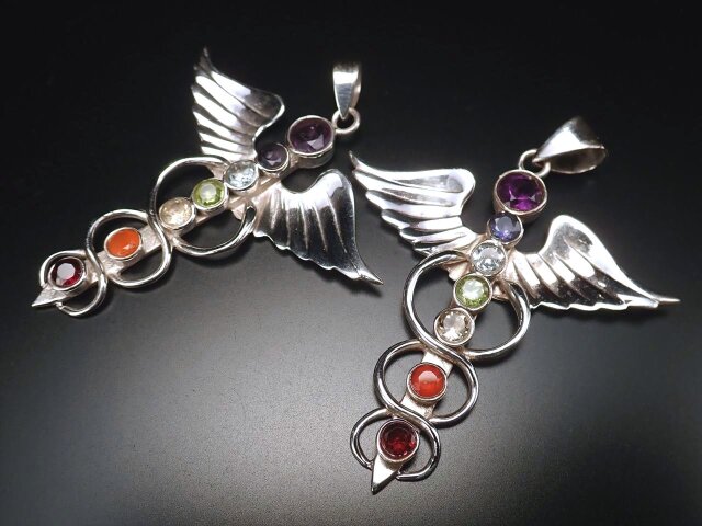 ★生命を意味する魔除けの護符★チャクラストーン7種★古代インドから伝わるエネルギー補給★7チャクラ・エンジェルペンダントトップ★Silver925★縦約5.5cm★石サイズ縦約4mm★