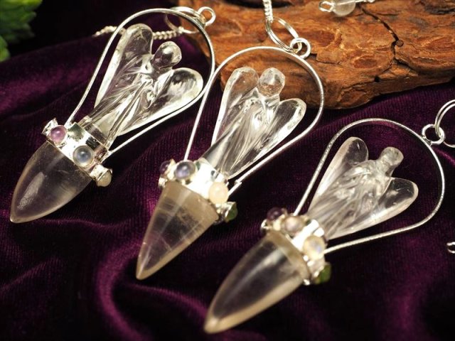 ◆天使像付きペンデュラム◆チャクラストーン7種◆大人気スピリチュアルグッズ◆ヒマラヤ水晶 天使像付きチャクラペンデュラム◆縦約60-70mm◆【インド・ヒマラヤ山脈産】