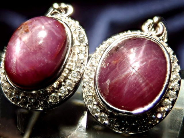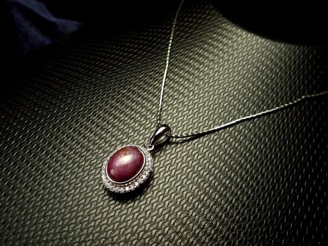 ◆つやつや濃厚色◆ジルコニア装飾タイプ◆勝利と情熱を象徴する石◆AAAA◆スタールビーペンダントトップ◆ぷっくりオーバル型◆縦約13mm前後【石サイズ縦約9mm前後】◆Silver925◆【ミャンマー産】