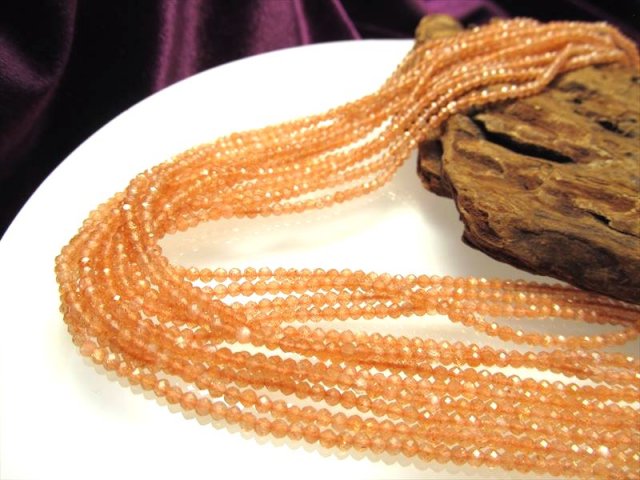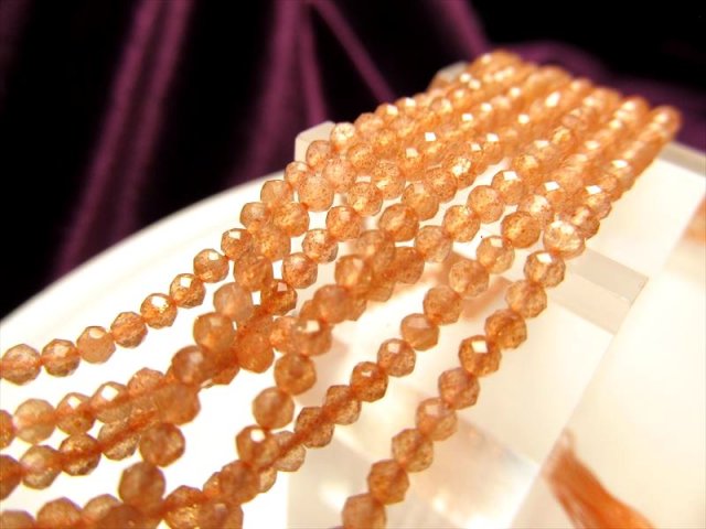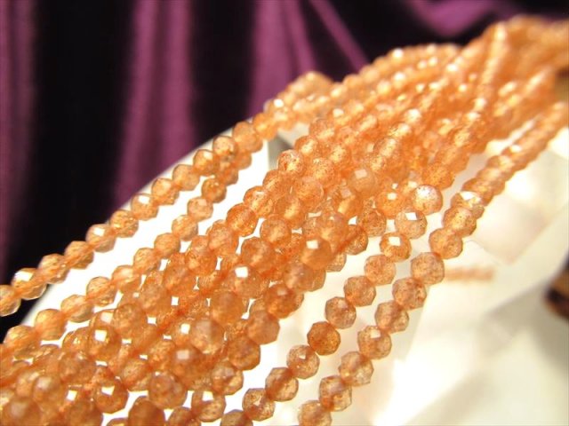 • ★約2-2.5mm★透明感抜群★ネックレスなどに!★一連★AAA★サンストーン【日長石】ボタンカット★【0.3mm糸通し】★約33cm★【インド産】