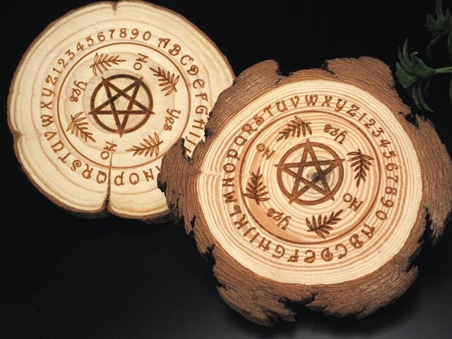 ◆神聖な彫刻入りのウッドプレート◆パイン材使用◆温もり感じる無垢材◆インテリアのポイントに◆スライスウッドプレート◆最大幅約10-11.5cm◆【タイプE】