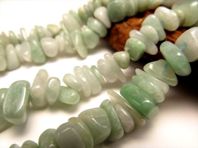 • ★激安奉仕★心を安定させる石★ミャンマージェイド【翡翠:軟玉】さざれ連★約5-12mm★約38-40cm★【ミャンマー産】