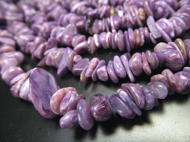 • ★人気!三大ヒーリングストーン★美マーブル★激安★チャロアイト【チャロ石】さざれ連★約4-10mm★約38-40cm★【ロシア産】