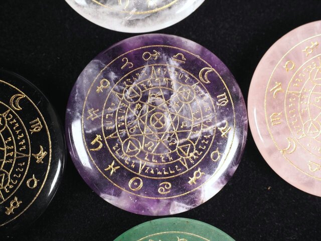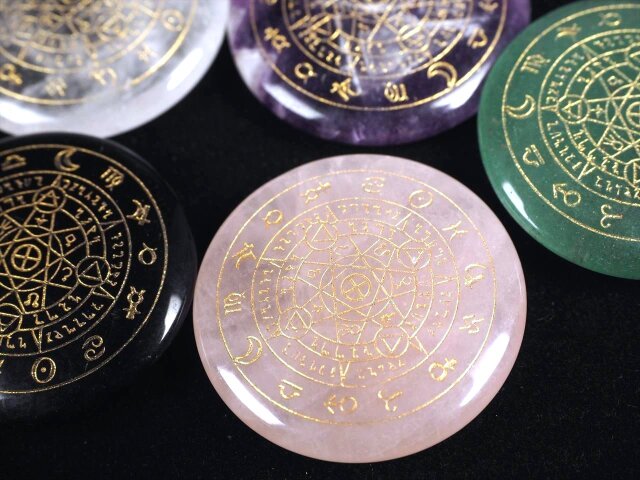 ◆大好評!◆心地よい手のひらサイズ◆12星座◆魔法陣パームストーン◆選べる7種のストーン◆サイズ直径約30mm◆