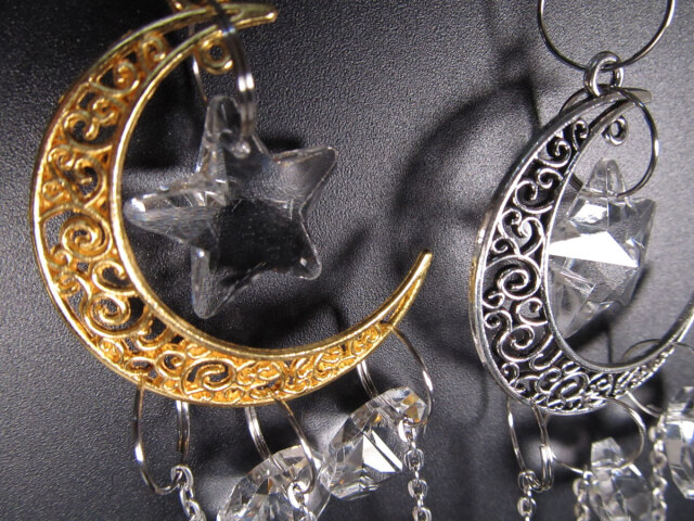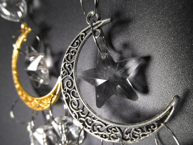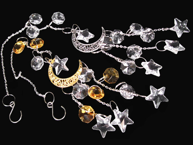 ★スター&ムーンサンキャッチャー★「願いが叶う」三日月★選べる2色★ゴールド&シルバー★高品質ビーズクラフト★スター&ムーンサンキャッチャー★全長約38cm★