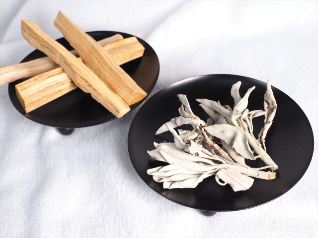 ◆セージ・パロサント・アロマオイルの使用にも◆金属製◆香皿◆シックなマットブラック◆ラウンドトレー◆