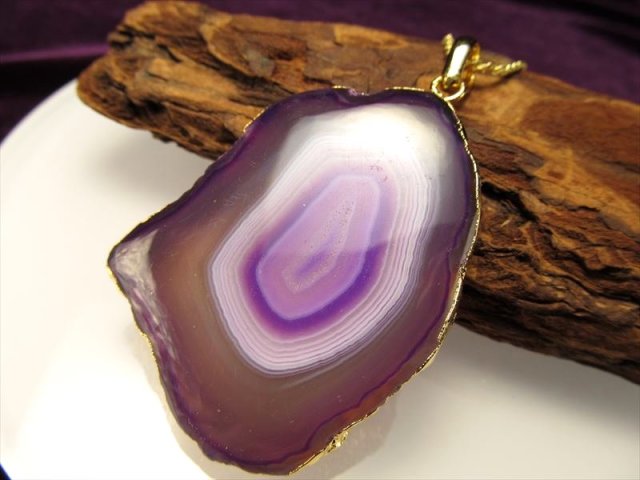 ★良質!スライスアゲート★色鮮やかなカラフルアゲート★一面ポリッシュ★1点物★真鍮の留め金付き★スライスアゲート【瑪瑙】ペンダントトップ★石サイズ約48mm★