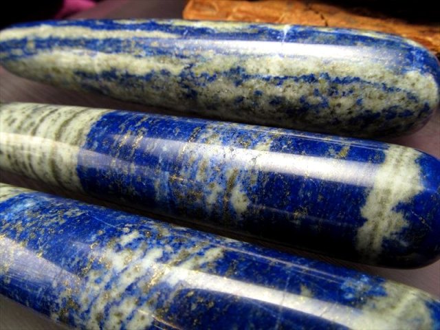 ★天然石マッサージ棒★ツーソン展示会商品★老廃物の除去に★お得な!1本2480円★ラピスラズリ【青金石】マッサージワンド★長さ約100-110mm★太さ約10-20mm★【ブラジル産】
