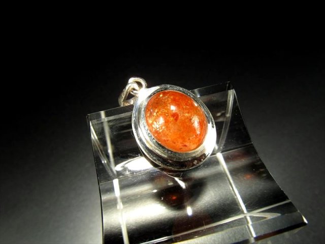 ★極上濃色!きらきらオレンジ★太陽の石★Silver925★1点物★濃色サンストーンペンダントトップ★オーバルタイプ★縦約11.7mm(石サイズ)★【インド産】