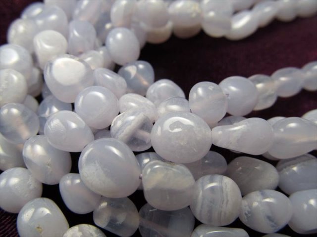★高品質!★お買い得タンブル連★ブルーレースアゲート【空色縞瑪瑙】タンブル連★幅約5-8mm★一連★約38-40cm★【ブラジル産】
