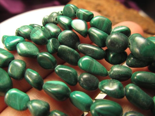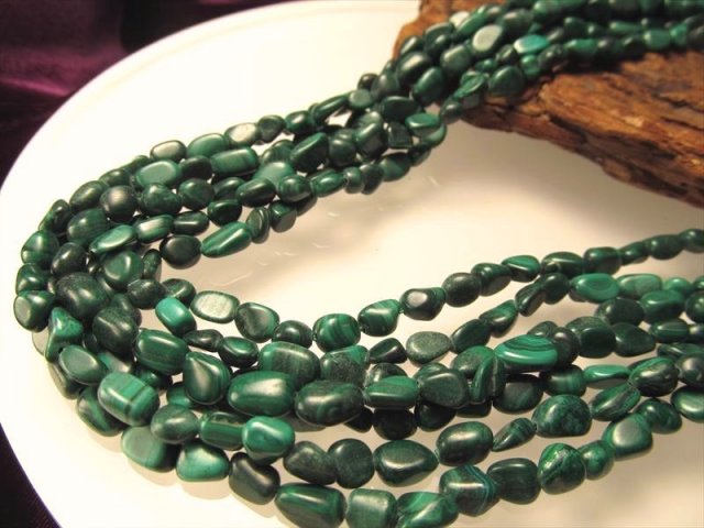 • ★高品質!★お買い得タンブル連★一連★マラカイト【孔雀石】タンブル連★幅約4.5-7mm★約38-40cm★【コンゴ産】