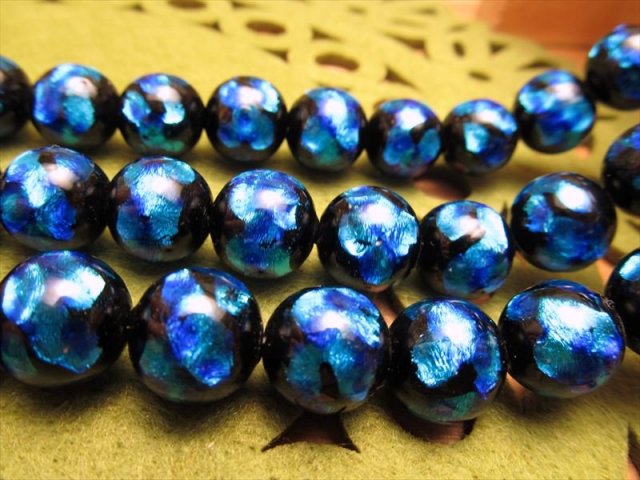 • ◆可愛らしいデザインいっぱい♪◆昔ながらの人工ビーズ!◆蓄光ホタルガラス【トンボ玉(とんぼ玉)】ビーズ ラウンド型◆一連◆6-6.5mm◆約36-38cm◆タイプC◆