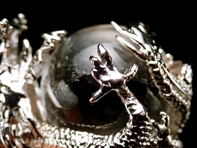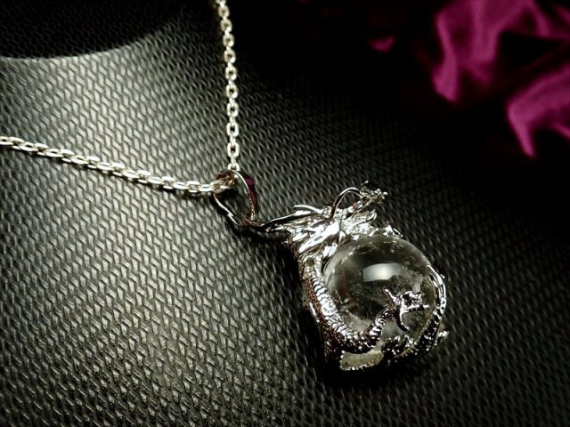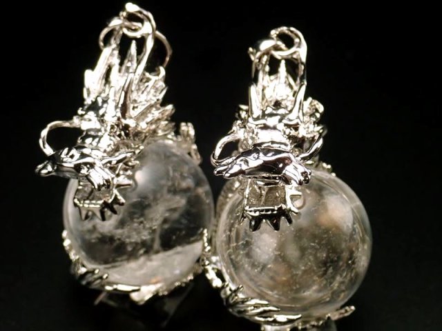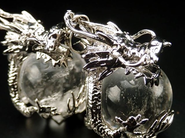 ★激安!★ツーソン展示会商品★青龍メタル装飾★1個520円★ドラゴンキャッチ デザインペンダントトップ【水晶】★縦約33mm(バチカン含まない)★珠サイズ約16mm★【ブラジル産】